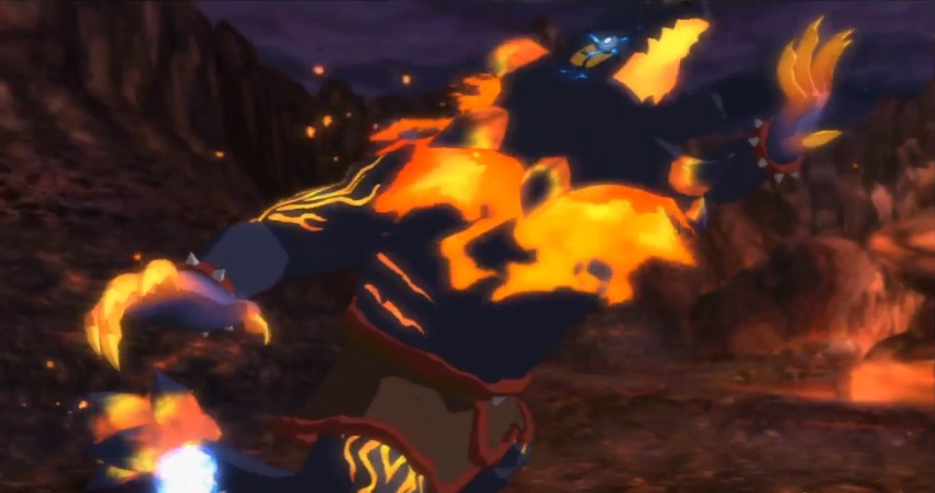 As with Moltaan, try to get behind him and attack his tail, doing as much physical damage as you can, as quickly as you can. Being behind him, you should avoid the majority of his attacks, so keep whacking away at him, hopefully canceling an attack and getting a gold glim.